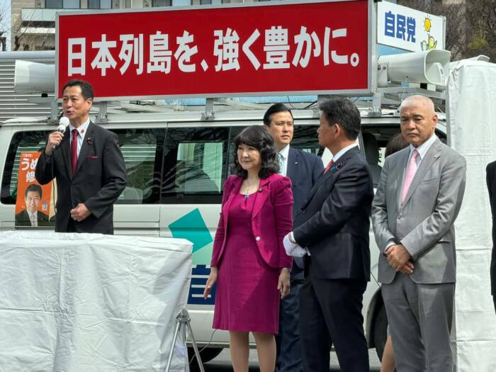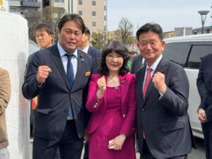 4月5日、久喜市東鷲宮駅に片山さつき財務大臣梅田修一市長の応援に入りました!