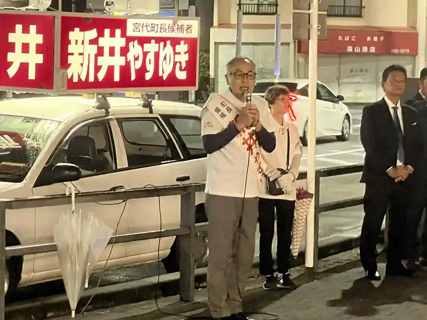 宮代町町長選挙、新井やすゆき候補、3期目の当選!おめでとうございます!
