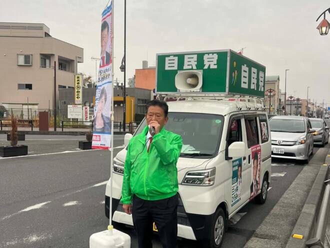 埼玉県幸手市のJR幸手駅東口にて朝の街頭活動