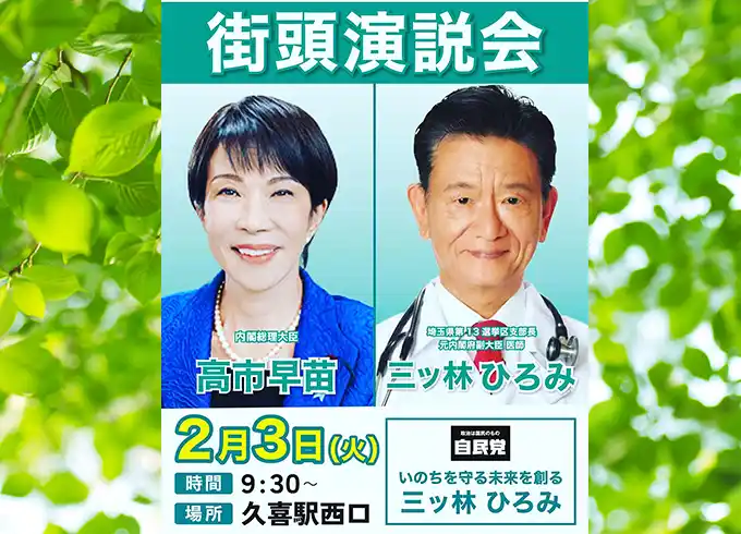 • 自由民主党 高市早苗総裁が久喜駅西口に参ります。