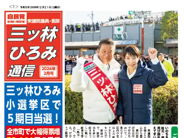 毎月、三ッ林ひろみが「いのちを守り、未来を創る。「医療」「農業」「教育」を軸に私がやらねば誰がやる!」と奮闘する活動内容をお届けする三ッ林ひろみ通信2026年2月号のWEB版配信を開始しました。