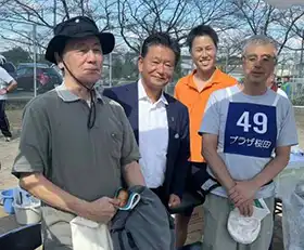 伊奈町にてグラウンドゴルフ練習をされている皆さまにご挨拶